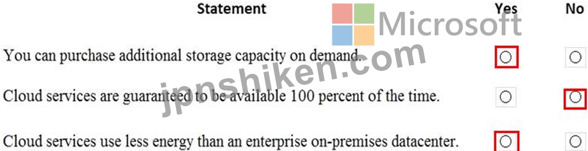 質問98 手順:次の各ステートメントで、ステートメントがtrueの場合は[...