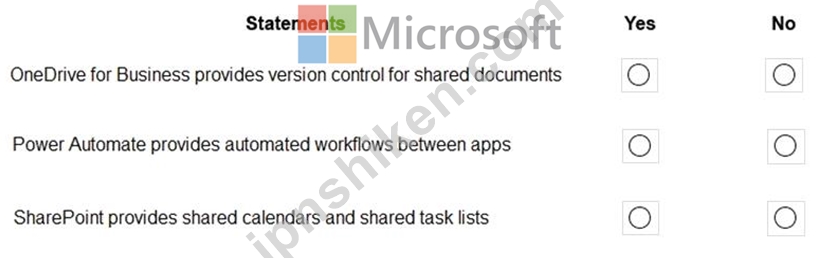 以下の各ステートメントについて、ステートメントが真である場合は「はい」を選択します。それ以外の場合は、「いいえ」を選択します。
