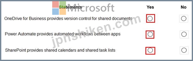 質問23 ある会社がMicrosoft365を評価しています。 文を正しく完成させ...