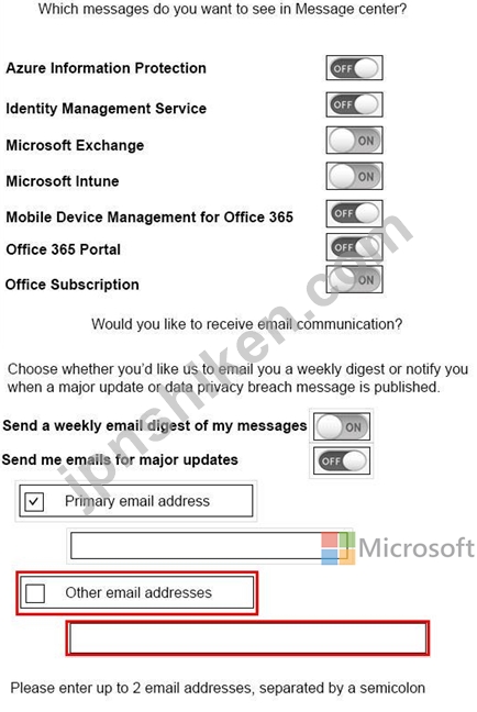 [メッセージセンターの設定を編集]ダイアログボックスで選択する必要がある3つのオプションはどれですか。回答するには、回答領域のダイアログボックスで適切な項目を選択します。