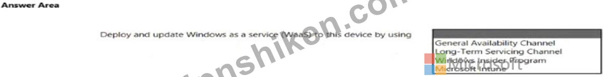 会社はMicrosoft36Sを使用しています。同社には、インターネットにアクセスできないデバイスで実行されるアプリケーションがあります。デバイスは2年ごとに手動でのみ更新できます。デバイスを更新する方法を決定する必要があります。文を正しく完成させる答えを選択してください。