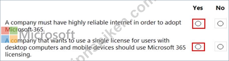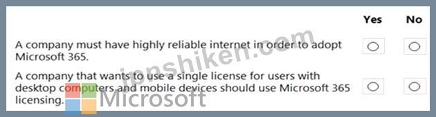 質問23 ある会社がMicrosoft365を評価しています。 文を正しく完成させ...