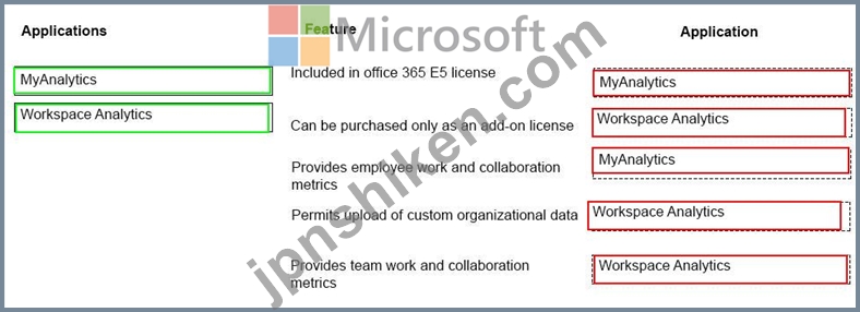 MyAnalytics と Workspace Analytics のさまざまな機能を特定する必要があります。