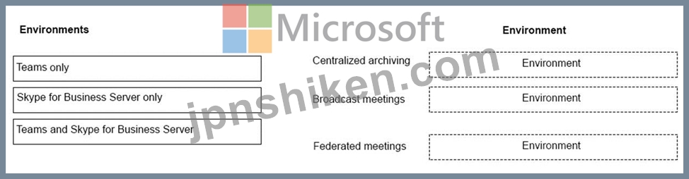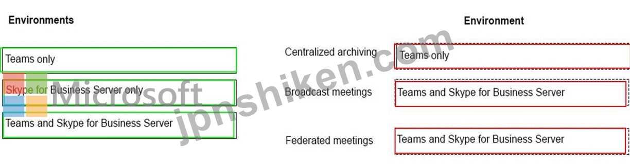ある会社は、従業員向けのコラボレーション ツールの導入を計画しています。同社は、ハイブリッド環境を展開する予定はありません。Teams と Skype for Business Server で利用できる機能を特定する必要があります。