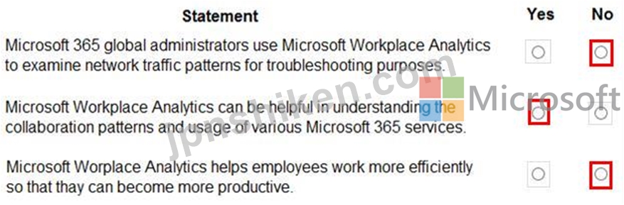 質問33 あなたは会社の Microsoft 365 管理者です。 MyAnalytics と Wor...