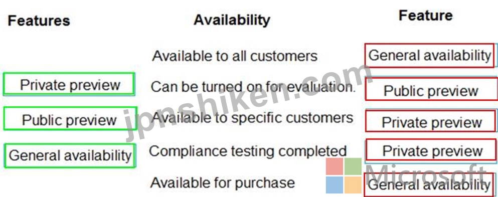 質問15 Microsoft 365 の各機能をその可用性に合わせてください。 指示:...