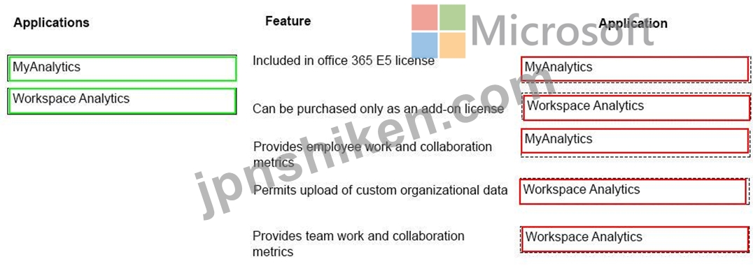 MyAnalytics と Workspace Analytics のさまざまな機能を特定する必要があります。