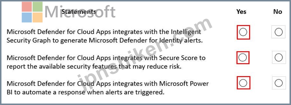 指示: 次の各ステートメントについて、ステートメントが正しい場合は [はい] を選択します。それ以外の場合は、[いいえ] を選択します。 注: 正しい選択はそれぞれ 1 ポイントの価値があります。