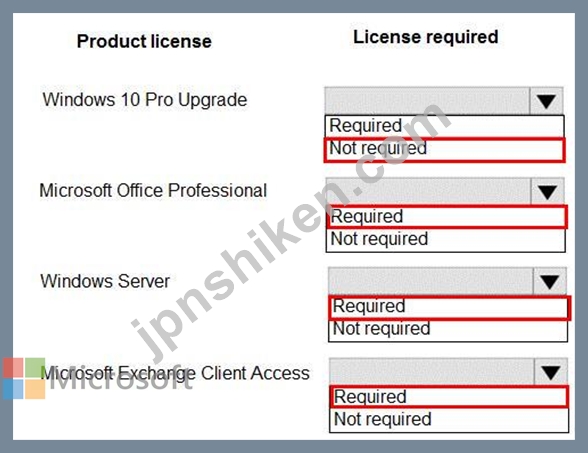 会社はどの製品ライセンスを購入する必要がありますか? 回答するには、回答エリアで適切なオプションを選択します。