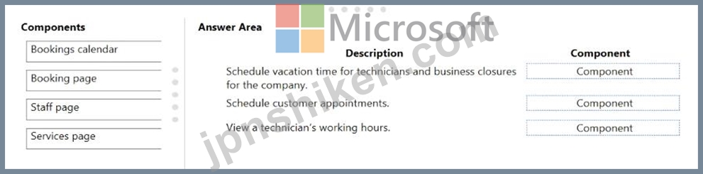 質問77 自動車修理会社が Microsoft Bookings を使用 お客様は、技術者...