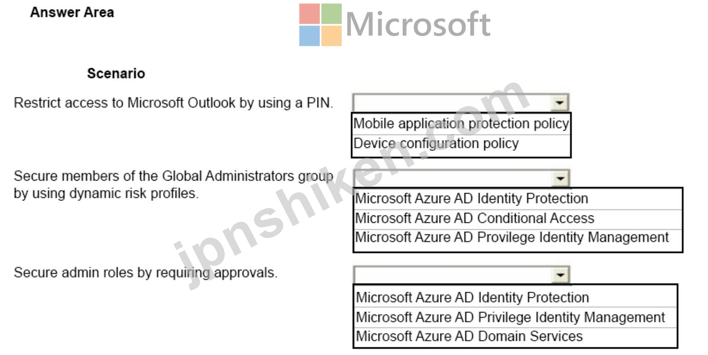 質問27 質問をドラッグ アンド ドロップ 組織は、すべての従業員に Micr...