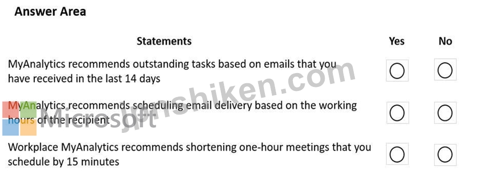 指示: 次の各ステートメントについて、ステートメントが正しい場合は [はい] を選択します。それ以外の場合は、[いいえ] を選択します。
