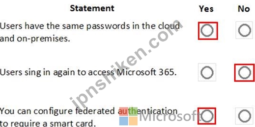 あなたは会社の Microsoft 365 管理者です。同社はフェデレーション認証と Azure AD Connect を実装しています。