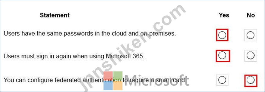 あなたは会社の Microsoft 365 管理者です。同社はフェデレーション認証を実装しています。