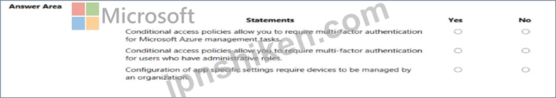 指示: 次の各ステートメントについて、ステートメントが正しい場合は [はい] を選択します。それ以外の場合は、[いいえ] を選択します。 注: 正しい選択はそれぞれ 1 ポイントの価値があります。