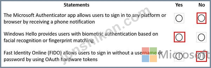 指示: 次の各ステートメントについて、ステートメントが正しい場合は [はい] を選択します。それ以外の場合は、[いいえ] を選択します。 注: 正しい選択はそれぞれ 1 ポイントの価値があります。