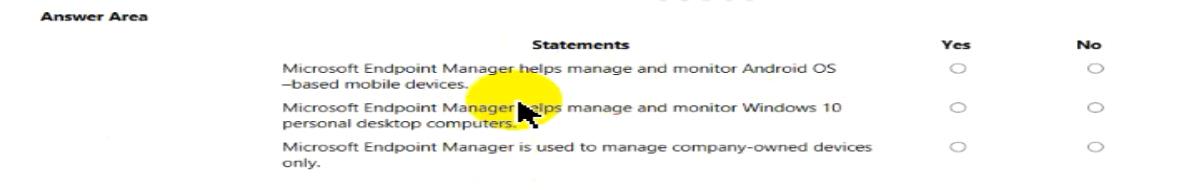 指示: 次の各ステートメントについて、ステートメントが正しい場合は [はい] を選択します。それ以外の場合は、[いいえ] を選択します。 注: 正しい選択はそれぞれ 1 ポイントの価値があります。