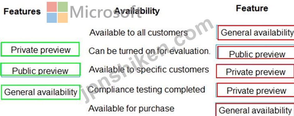 質問52 Microsoft 365 の各機能をその可用性に合わせてください。 指示:...