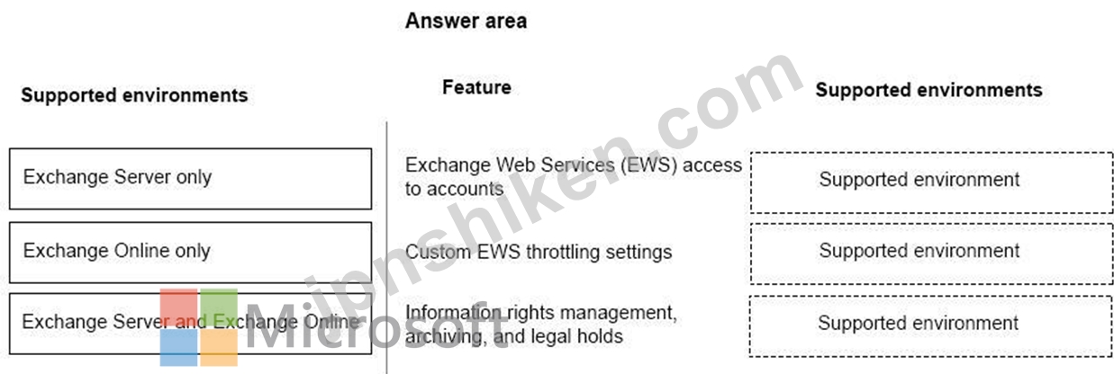 Exchange OnlineとExchange Serverの機能の違いを識別する必要があります。