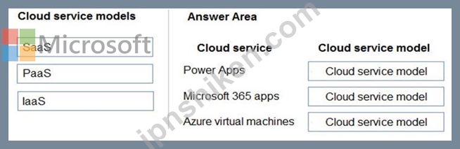 答えるには、適切なクラウドサービスモデルを正しいクラウドサービスにドラッグします。各クラウドサービスモデルは、1回使用することも、複数回使用することも、まったく使用しないこともできます。コンテンツを表示するには、分割バーをペイン間でドラッグするか、スクロールする必要がある場合があります。