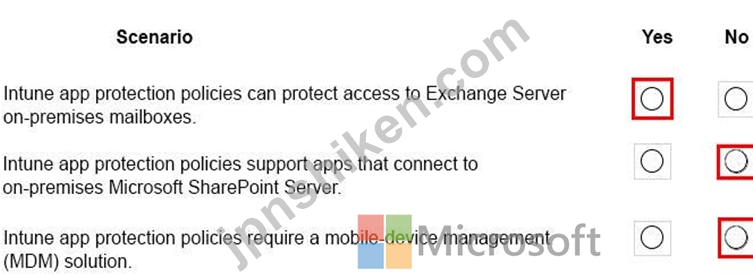 Intune を使用して実装できるシナリオはどれですか? 答えるには、与えられたシナリオに対して適切な答えを選択してください。