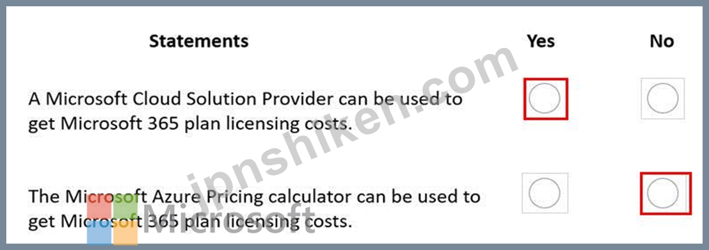 指示: 次の各ステートメントについて、ステートメントが正しい場合は [はい] を選択します。それ以外の場合は、[いいえ] を選択します。