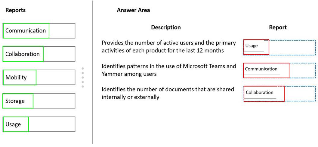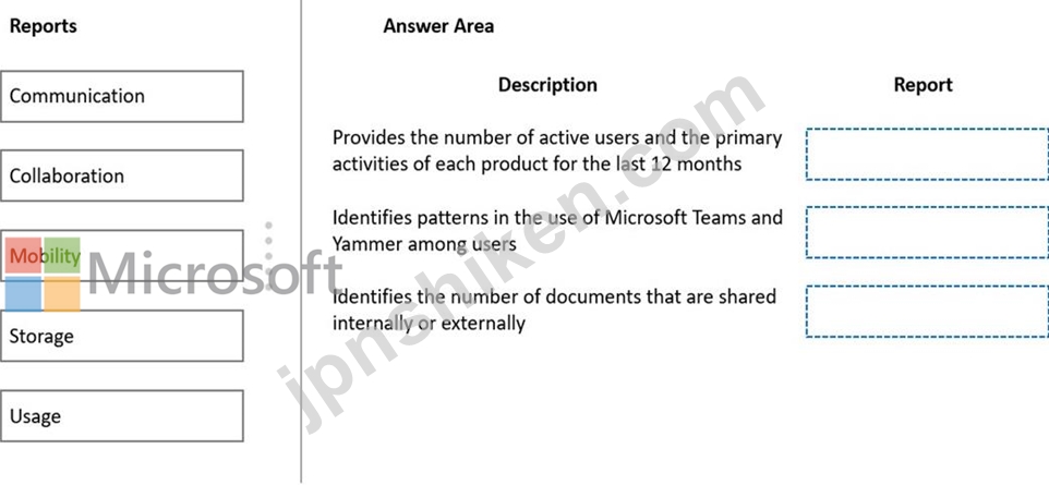 会社は、Microsoft 365 の使用状況分析で利用できるレポートを使用することを計画しています。