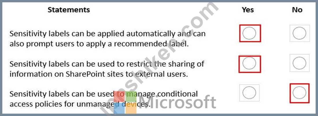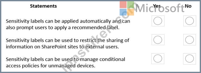 指示: 次の各ステートメントについて、ステートメントが正しい場合は [はい] を選択します。それ以外の場合は、[いいえ] を選択します。 注: 正しい選択はそれぞれ 1 ポイントの価値があります。