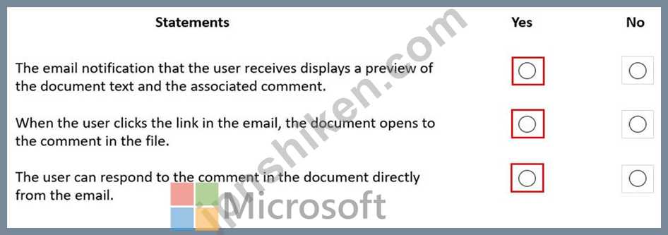 指示: 次の各ステートメントについて、ステートメントが正しい場合は [はい] を選択します。それ以外の場合は、[いいえ] を選択します。