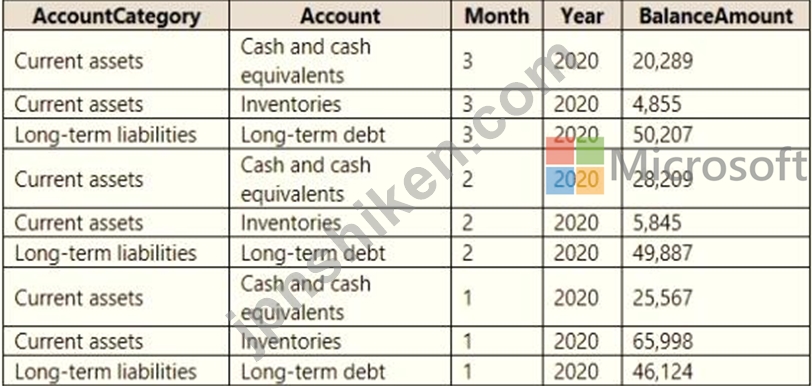 You plan to relate the balance sheet to a standard date table in Power Bl in a many-to-one relationship based on the last day of the month. At least one of the balance sheet reports in the quarterly reporting package must show the ending balances for the quarter, as well as for the previous quarter.