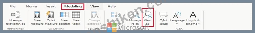 After you've created your roles, test the results of the roles within Power BI Desktop. From the Modeling tab, select View as.