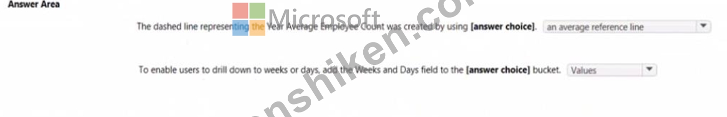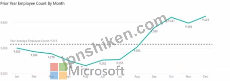 質問85 シミュレーション 次の図に示すように、Power Bl レポートで折れ...