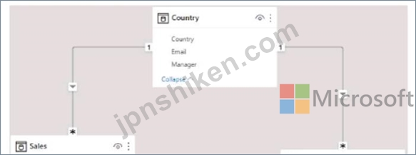 質問197 次の図に示す Power BI データ モデルがあります。 (Exhibit) ド...