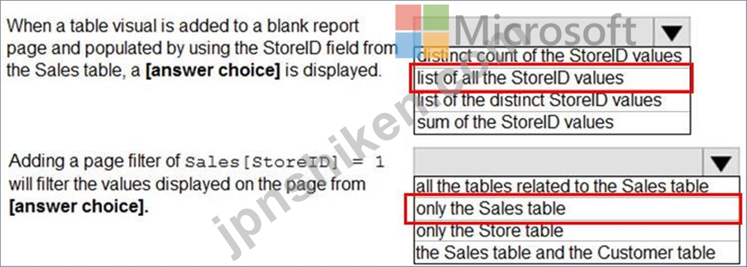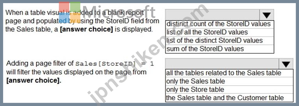質問197 次の図に示す Power BI データ モデルがあります。 (Exhibit) ド...
