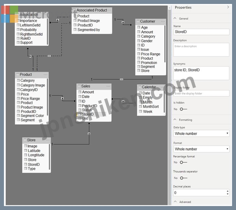 次の図に示す Power BI データ モデルがあります。