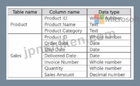 質問116 次の表に示すテーブルを含む Microsoft Power BI データ モデル...