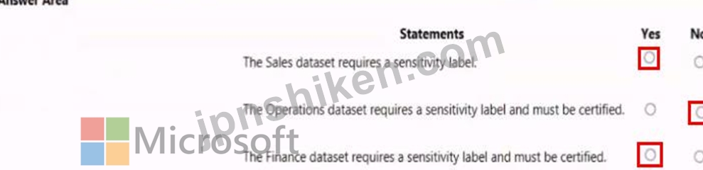 質問1 あなたの会社は、Microsoft Power BIのデータセット、レポート、...