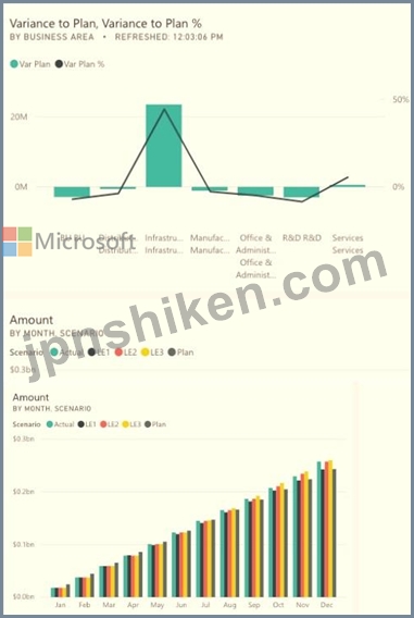 質問12 Power BI で財務レポートを準備しています。 次の図に示すように...