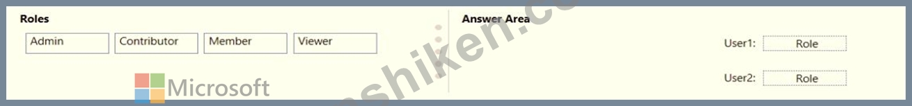 各ユーザーにはどのユーザーロールを割り当てる必要がありますか? 回答するには、適切なロールを正しいユーザーにドラッグします。