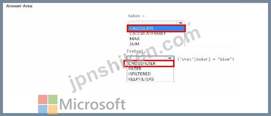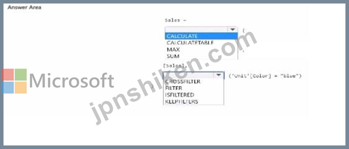 DAX 式をどのように完成させる必要がありますか? 回答するには、回答領域で適切なオプションを選択してください。