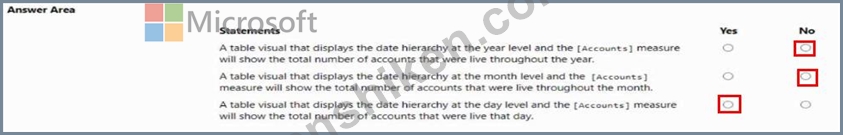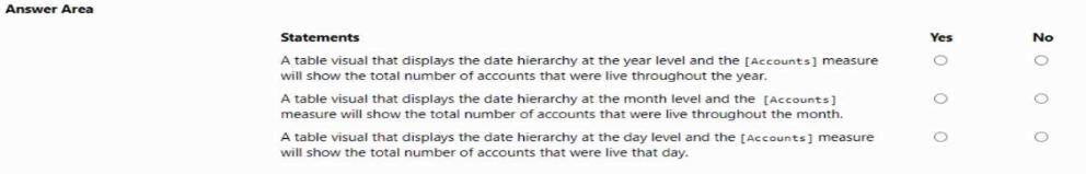質問180 次のデータを含む Power BI モデルがあります。 (Exhibit) Date ...