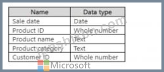 質問116 次の表に示すテーブルを含む Microsoft Power BI データ モデル...
