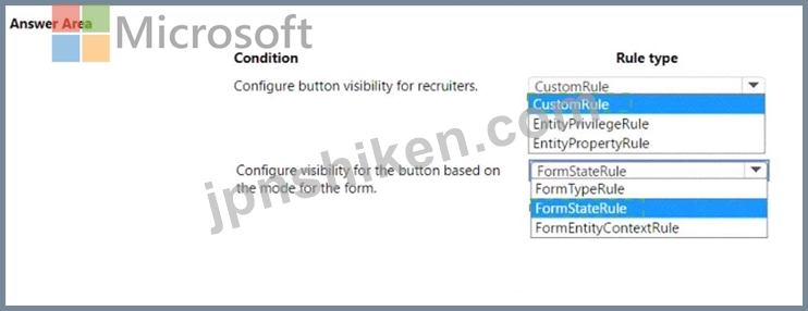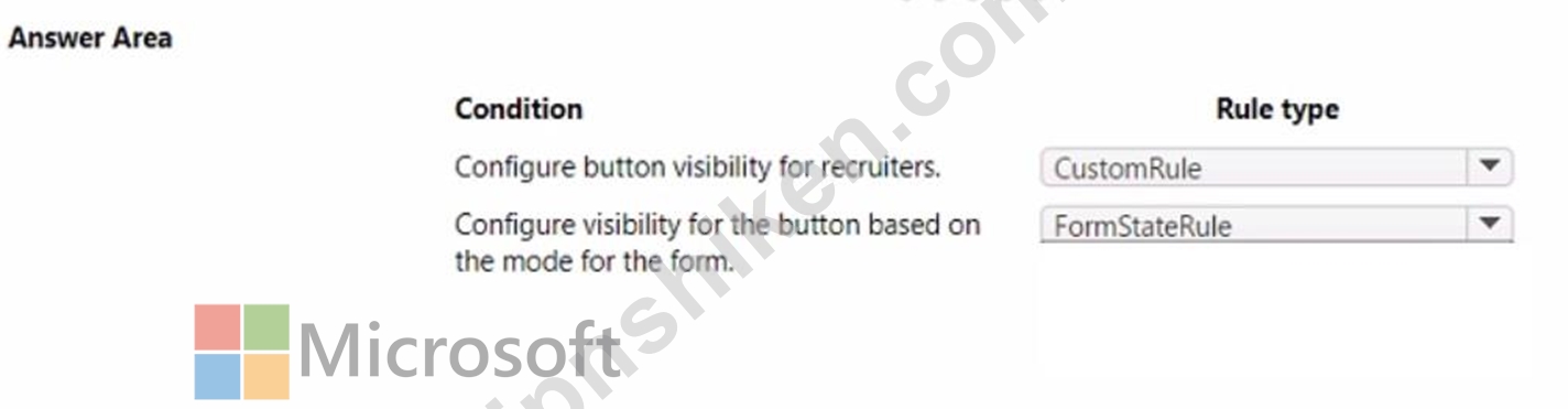 スコアリング コマンド ボタンの可用性を制御するには、リボン表示ルールを実装する必要があります。どのタイプのルールを使用する必要がありますか? 回答するには、回答内の適切な選択肢を選択してください。注: 正しく選択するたびに 1 ポイントの価値があります。