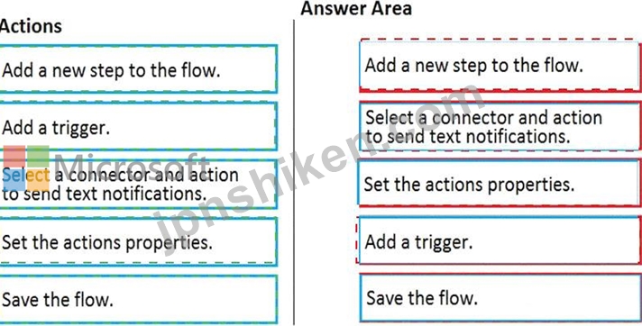 どの順序でアクションを実行する必要がありますか?回答するには、すべてのアクションをアクションのリストから回答領域に移動し、正しい順序に並べます。