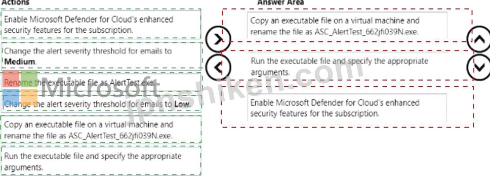 To validate that Microsoft Defender for Cloud will trigger an alert when a malicious file is present on an Azure virtual machine running Windows Server, you should perform the following three actions in sequence: