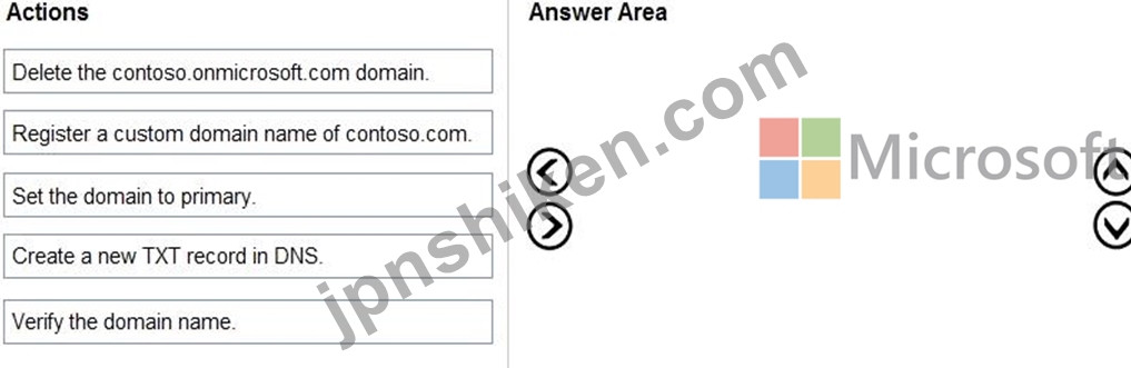 質問8 contoso.onmicrosoft.comのドメイン名を使用する新しいMicrosoft...