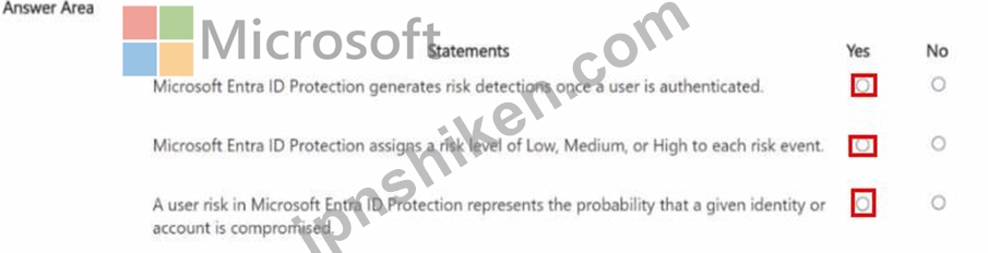 次の各ステートメントについて、ステートメントがtrueの場合は、[はい]を選択します。それ以外の場合は、[いいえ]を選択します。