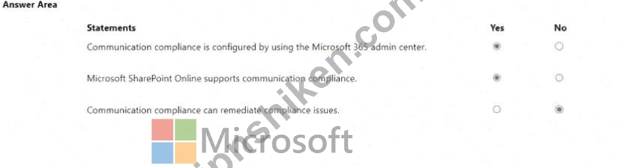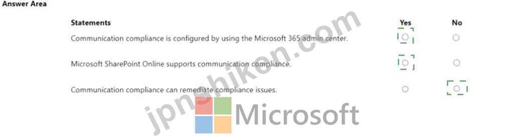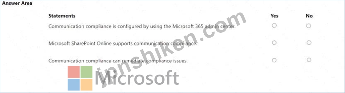 次の各ステートメントについて、ステートメントがtrueの場合は、[はい]を選択します。それ以外の場合は、[いいえ]を選択します。
