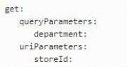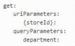 特定のストア ID および部門名のデータを取得するための Web クライアントからのリクエストをサポートする有効な RAML スニペットは何ですか?