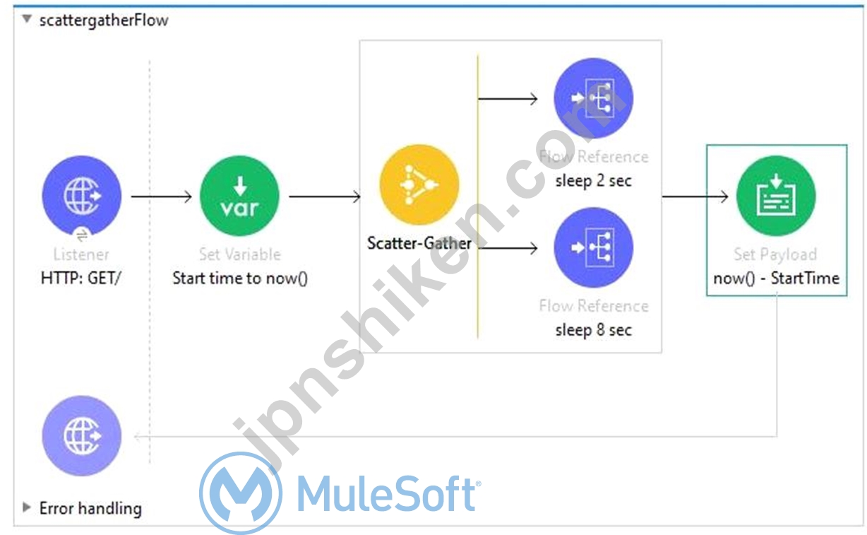 Scatter-Gatherが呼び出されてから「Set Payload」トランスフォーマが呼び出されるまでに約何秒かかりますか?